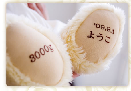 足裏刺繍も可能で、上記のように出生時のデータが入ります。
