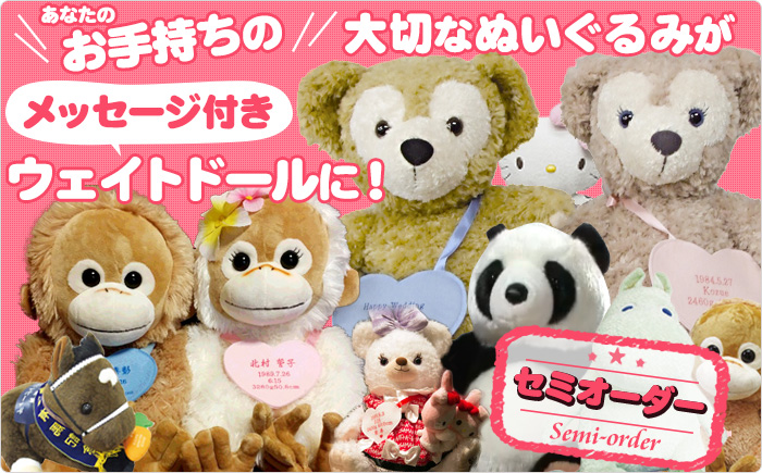 ちょっと変わったウェイトドールは、自分の手持ちのぬいぐるみをウェイトドールにすることが可能です。