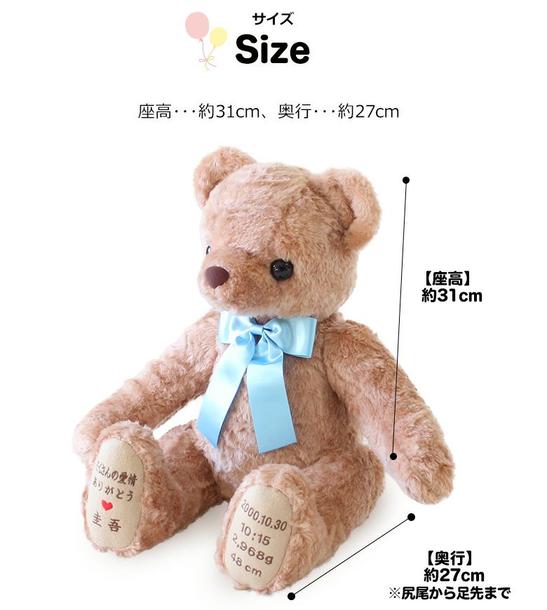 【結婚式】【成人式】【出産祝い】産まれたときの体重と身長を忠実に再現します!バースデータとメッセージを足裏に刺繍することが出来る、世界に一つのベア ぬいぐるみ サンクステディベア TW(トール&ウェイト) 【身長体重ベア】