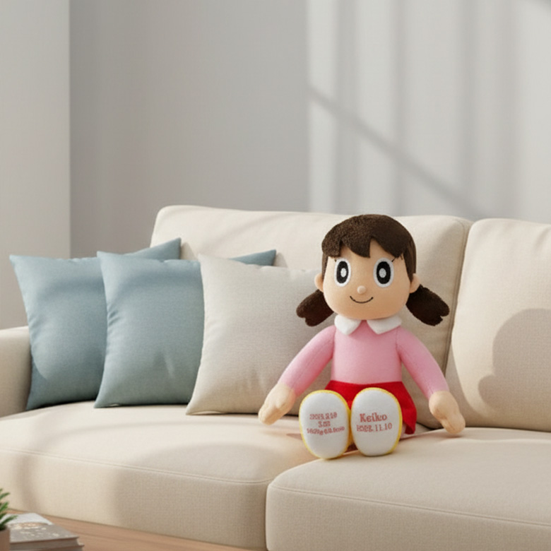 お客様がお持ちのドラえもんのぬいぐるみをお預かりし、生まれたときの体重と同じ重さでお仕立てする――世界に一つだけの「ドラえもんウェイトドール」。
