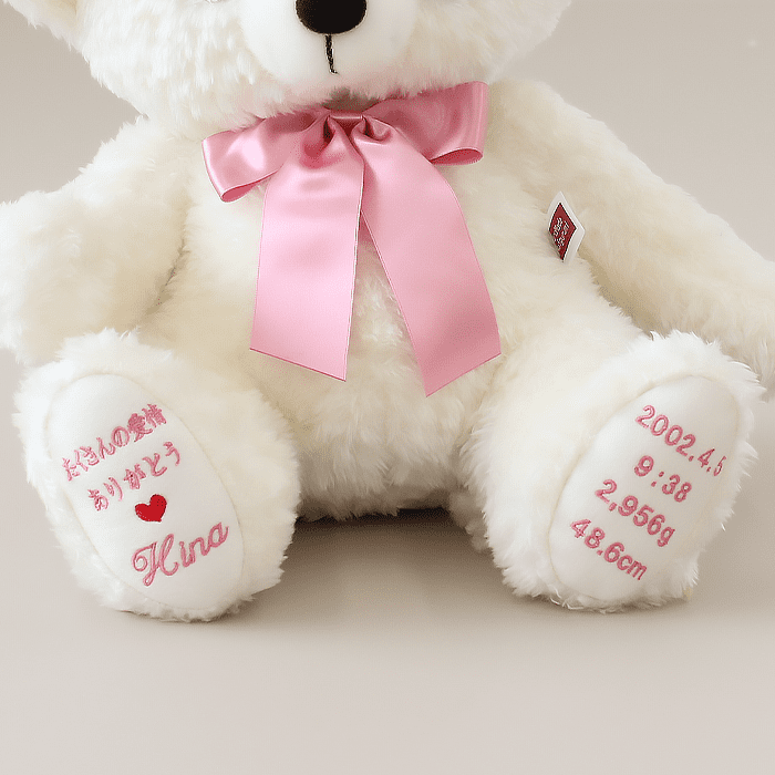 ベアの足裏にバースデータやメッセージをお入れできます。