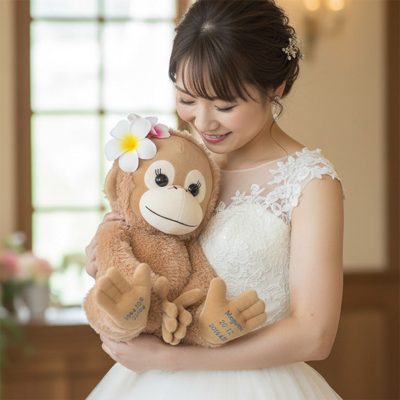 新郎新婦からご両親へ、これまでの感謝を伝えるシーンにぴったりなのがウェイトドールです。誕生時の重さを再現したベイビーココ&ナツのぬいぐるみは、「あなたにこんなに大切に育ててもらった」という想いをカタチにする特別な品。セレモニーの感動をさらに深め、両親の心に残る一生もののプレゼントになることでしょう。