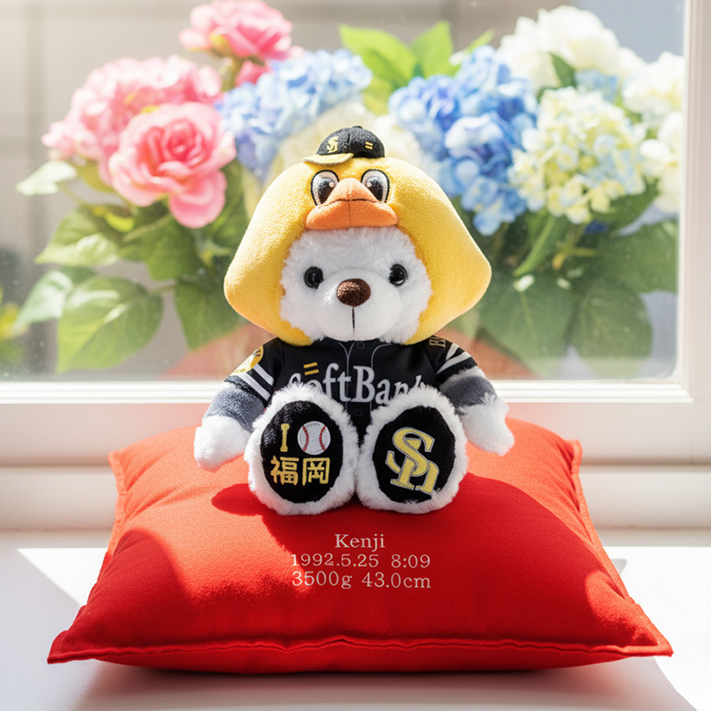 ソフトバンクホークスが大好きな方にとって、このぬいぐるみは特別な存在です。 実際、多くのお客様が「ウェイトドールにしたくてぴったりのぬいぐるみを探してきました」と言ってご依頼くださいます。 その瞬間から、このぬいぐるみは単なるグッズではなく、“大切な誰かの想いを託す存在”へと変わります。
