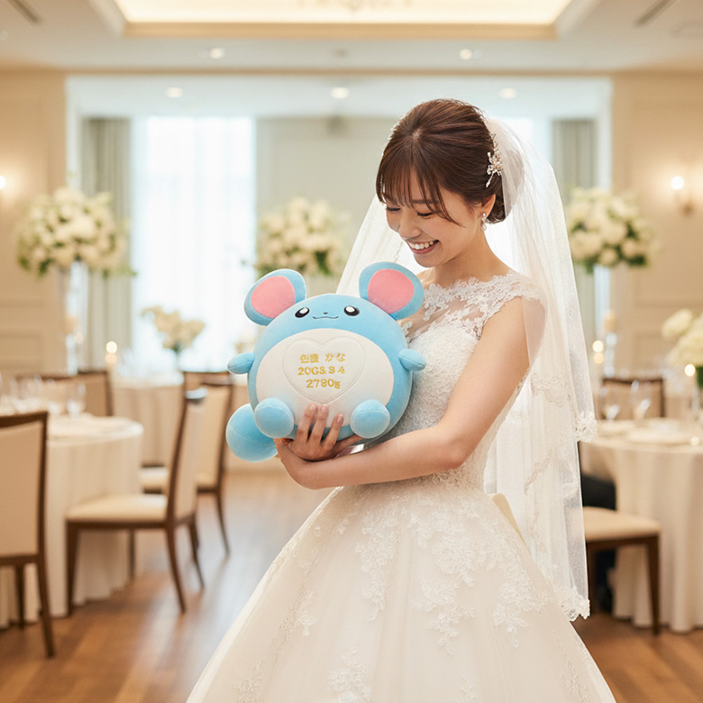 ピカチュウ、イーブイ、カビゴン、エルフーンなど人気のポケモンぬいぐるみを、お客様にご持参いただき、生まれた時の体重を再現する特別なウェイトドールに仕立てます。