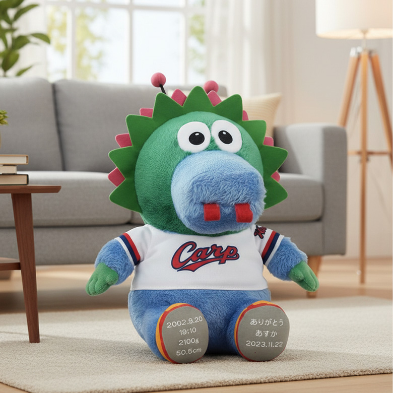 そんなスラィリーをモチーフにしたウェイトドールは、カープ愛と家族愛がひとつになった、まさに「心の記念品」。