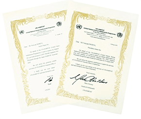 このページに掲載されているベアの代金の一部は、日本ハビタット協会を通じ、国連ハビタット(国連人間居住計画)に寄付されます。世界各地で急速な都市化が進行している今日、発展途上国の都市に暮らす人々の居住問題はますます深刻化しています。