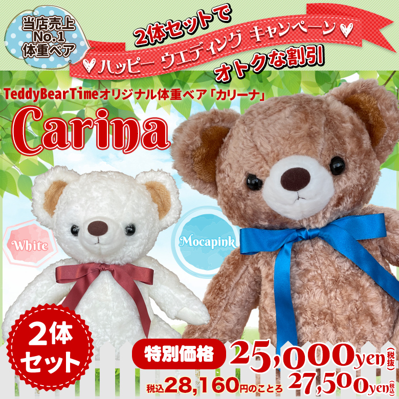 【結婚式】【成人式】【出産祝い】テディベアタイム完全オリジナル!当店人気No.1の体重ベア ぬいぐるみ カリーナ2体セット
